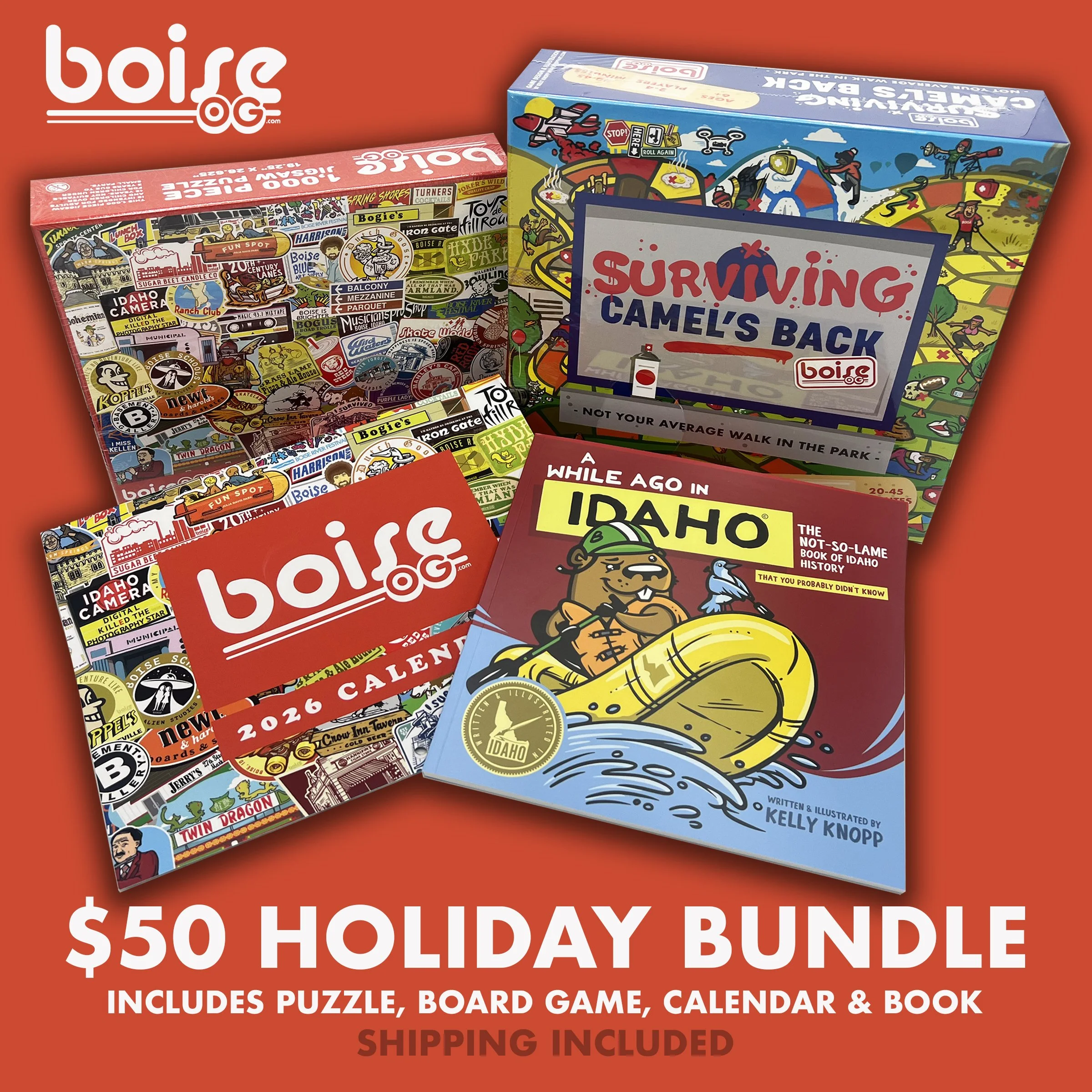 SHOP Shop Categories: All Hats, Shirts & Hoodies Stickers Accessories Games BoGEEZ Gift Cards All | Hats, Shirts & Hoodies | Stickers | Accessories | Games | BoGEEZ | Gift Cards | Holiday Bundle $50.00 Boise OG Gift Card from $10.00 Boise OG 2026 Calendar $23.00 Surviving Camel's Back Board Game $26.99 Boise OG 1000 Piece Jigsaw Puzzle $26.99 Boise OG Game Closet Bundle $43.98 Boise OG Logo Unisex Hoodie $40.00 Boise OG Logo Unisex Long Sleeve Tee $32.00 Boise OG Logo Unisex Tee $28.00 Boise OG Baby Tee $28.00 Boise OG Baby Onesie $28.00 Boise OG Patch $9.00 Sold Out Boise OG Magnet $5.00 Boise OG $6.00 I Survived Camel’s Back $6.00 I Survived Camel's Back Park Unisex Hoodie $40.00 I Survived Came's Back Unisex Long Sleeve Tee $32.00 I Survived Camel's Back Park Unisex Tee $28.00 I Survived Camel's Back Patch Snapback Hat $26.00 I Survived Camel's Back Park Magnet $6.00 Boise City Ice Blocking Champion $6.00 Boise City Ice Blocking Champion Unisex Hoodie $40.00 Boise City Ice Blocking Champion Unisex Long Sleeve Tee $32.00 Boise City Ice Blocking Champion Unisex Tee $28.00 Never Forget Garden City $6.00 Never Forget Garden City Unisex Hoodie $40.00 Never Forget Garden City Unisex Long Sleeve Tee $32.00 Never Forget Garden City Unisex Tee $28.00 Bogus Road Trolls (Skis) $6.00 Bogus Road Trolls (Skis) Unisex Hoodie $40.00 Bogus Road Trolls (Skis) Unisex Long Sleeve Tee $32.00 Bogus Road Trolls (Skis) Unisex Tee $28.00 Bogus Road Trolls Magnet (Skis) $6.00 Bogus Road Trolls Patch Snapback Hat $26.00 Bogus Road Trolls Air Freshener $6.00 Bogus Road Trolls (Snowboard) $6.00 Bogus Road Trolls (Snowboard) Unisex Hoodie $40.00 Bogus Road Trolls (Snowboard) Unisex Long Sleeve Tee $32.00 Bogus Road Trolls (Snowboard) Unisex Tee $28.00 Bogus Road Trolls Bumper Sticker $6.00 Sold Out Bogus Rope Tow $6.00 Boise OG Montage Print #1 $23.00 Sold Out Idaho Wild Art Print $23.00 Sold Out Idaho or Bust Art Print $23.00 Sold Out Boise Tree Vibes Art Print $23.00 Sold Out Boise Tree Vibes $6.00 Surf Boise Art Print $23.00 Sold Out Best of OG Sticker Sheet $15.00 North End Sticker Sheet $15.00 Boise OG Bar Coasters $10.00 Sold Out Twin Dragon $6.00 Twin Dragon Unisex Hoodie $40.00 Twin Dragon Unisex Long Sleeve Tee $32.00 Twin Dragon Unisex Tee $28.00 Koppel's Browzeville $6.00 Koppel's Browzeville Unisex Hoodie $40.00 Koppel's Browzeville Unisex Long Sleeve Tee $32.00 Koppel's Browzeville Unisex Tee $28.00 Hollywood Market $6.00 Hollywood Market Unisex Hoodie $40.00 Hollywood Market Unisex Long Sleeve Tee $32.00 Hollywood Market Unisex Tee $28.00 Crow Inn Tavern $6.00 Crow Inn Tavern Unisex Hoodie $40.00 Crow Inn Tavern Unisex Long Sleeve Tee $32.00 Crow Inn Tavern Unisex Tee $28.00 Hannifin's Cigar Store $6.00 Hannifin's Cigar Store Unisex Hoodie $40.00 Hannifin's Cigar Store Unisex Long Sleeve Tee $32.00 Hannifin's Cigar Store Unisex Tee $28.00 Dutch Goose $6.00 Dutch Goose Unisex Tee $28.00 Dutch Goose Unisex Hoodie $40.00 Dutch Goose Unisex Long Sleeve Tee $32.00 Newt & Harold's $6.00 Newt & Harold's Unisex Hoodie $40.00 Newt & Harold's Unisex Long Sleeve Tee $32.00 Newt & Harold's Unisex Tee $28.00 Ranch Club $6.00 Ranch Club Unisex Hoodie $40.00 Ranch Club Unisex Long Sleeve Tee $32.00 Ranch Club Unisex Tee $28.00 Jerry's Market Unisex Hoodie $40.00 Jerry's Market Unisex Long Sleeve Tee $32.00 Jerry's Market Unisex Tee $28.00 Skateland $6.00 Skateland Unisex Hoodie $40.00 Skateland Unisex Long Sleeve Tee $32.00 Skateland Unisex Tee $28.00 DreamWalker $6.00 DreamWalker Unisex Hoodie $40.00 DreamWalker Unisex Long Sleeve Tee $32.00 DreamWalker Unisex Tee $28.00 Jerry’s Market $6.00 Fun Spot $6.00 Fun Spot Unisex Hoodie $40.00 Fun Spot Unisex Long Sleeve Tee $32.00 Fun Spot Unisex Tee $28.00 Wild Waters Season Pass $6.00 Wild Waters Unisex Hoodie $40.00 Wild Waters Unisex Long Sleeve Tee $32.00 Wild Waters Unisex Tee $28.00 Wild Waters Patch Snapback Hat $26.00 Skate World $6.00 Skate World Magnet $5.00 Skate World Unisex Hoodie $40.00 Skate World Unisex Long Sleeve Tee $32.00 Skate World Unisex Tee $28.00 Skate World Patch Snapback Hat $26.00 Hidden Springs $6.00 Hidden Springs Unisex Hoodie $40.00 Hidden Springs Unisex Long Sleeve Tee $32.00 Hidden Springs Unisex Tee $28.00 Hidden Springs Patch Snapback Hat $26.00 Sugar Beet Candle Co. $6.00 Sugar Beet Candle Co. Unisex Hoodie $40.00 Sugar Beet Candle Co. Unisex Long Sleeve Tee $32.00 20th Century Lanes $6.00 Pantry $6.00 Sugar Beet Candle Co. Unisex Tee $28.00 Smoky Davis (Rum Ham) $6.00 Smoky Davis (Rum Ham) Unisex Hoodie $40.00 Smoky Davis (Rum Ham) Unisex Long Sleeve Tee $32.00 Smoky Davis (Rum Ham) Unisex Tee $28.00 Manley's Cafe $6.00 Manley's Cafe Unisex Hoodie $40.00 Manley's Cafe Unisex Long Sleeve Tee $32.00 Manley's Cafe Unisex Tee $28.00 Jim's OG Rooster $6.00 Brick Oven Beanery $6.00 Emerald Club $6.00 JJ North's Buffet $6.00 Brass Lamp Pizza $6.00 Sav-On Cafe / Private Smokers Club $6.00 Sav-On Cafe Unisex Hoodie $40.00 Sav-On Cafe Unisex Long Sleeve Tee $32.00 Sav-On Cafe Unisex Tee $28.00 J.T. Toads Lounge $6.00 Peg-Leg Annie's $6.00 The Interlude Bar & Grill $6.00 The Red Room $6.00 Symposion $6.00 Cabana OG $6.00 Joker's Wild $6.00 Hillcrest Bowling $6.00 Torch Lounge Finger Steaks $6.00 Torch Lounge Unisex Hoodie $40.00 Torch Lounge Unisex Long Sleeve Tee $32.00 Torch Lounge Unisex Tee $28.00 Red Steer Gulp $6.00 Dead Steer $6.00 Boise Blue Art Supply $6.00 Koffee Klatsch $6.00 Mardi Gras $6.00 Bring Back Pollo Rey $6.00 Basement Gallery $6.00 Turner's Sportsfair $6.00 Lunch Box $6.00 Top of the Hoff $6.00 Turner's Cocktails $6.00 Turner's Cocktails Unisex Hoodie $40.00 Turner's Cocktails Unisex Long Sleeve Tee $32.00 Turner's Cocktails Unisex Tee $28.00 Gamekeeper $6.00 Donnie Mac's $6.00 Idaho Camera $6.00 Iron Gate $6.00 Fatty's Bar $6.00 Sunset Sports $6.00 Musician's Pro Shop Mini-Bumper $6.00 Pavilion $6.00 Bogie's Nightclub $6.00 Bow-Wow $6.00 Brotanical Gardens $6.00 Old Pen B&B $6.00 Boise River Festival Cup Design $6.00 